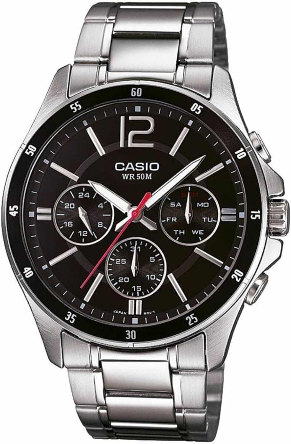 Casio Men's Watch - MTP-1374D-1AVDF Black Dial, Silver Band